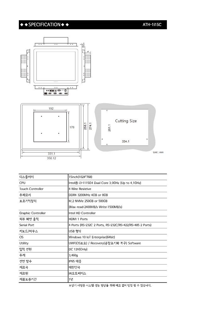 ¿ÀÅ亣À̽º ÅÍÄ¡ÆÐ³ÎPCÇÏÀÌÆÛ / ÀÎÅÚ i3 µà¾óÄÚ¾î 3.0GHz / OS: Windows 10 / HDMI,VGA / 1±â°¡ µà¾ó·£ / 1024*768 / RS-232: 4Æ÷Æ® / USB 3.0 2Æ÷Æ® / ÆÒ¸®½º / SSD:250GB(M.2 NVMe) / RAM:4GB / Àü¿ë ÆÄ¿ö Æ÷ÇÔ DC 12V 3.3A